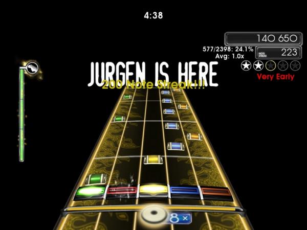 Єдиним чітом у Frets on Fire є виклик на поміч Юргена (Jürgen Guntherswarchzhaffenstrassen)− вигаданий гітарист. Юрген проводить навчання і його голосом звучать всі фрази.