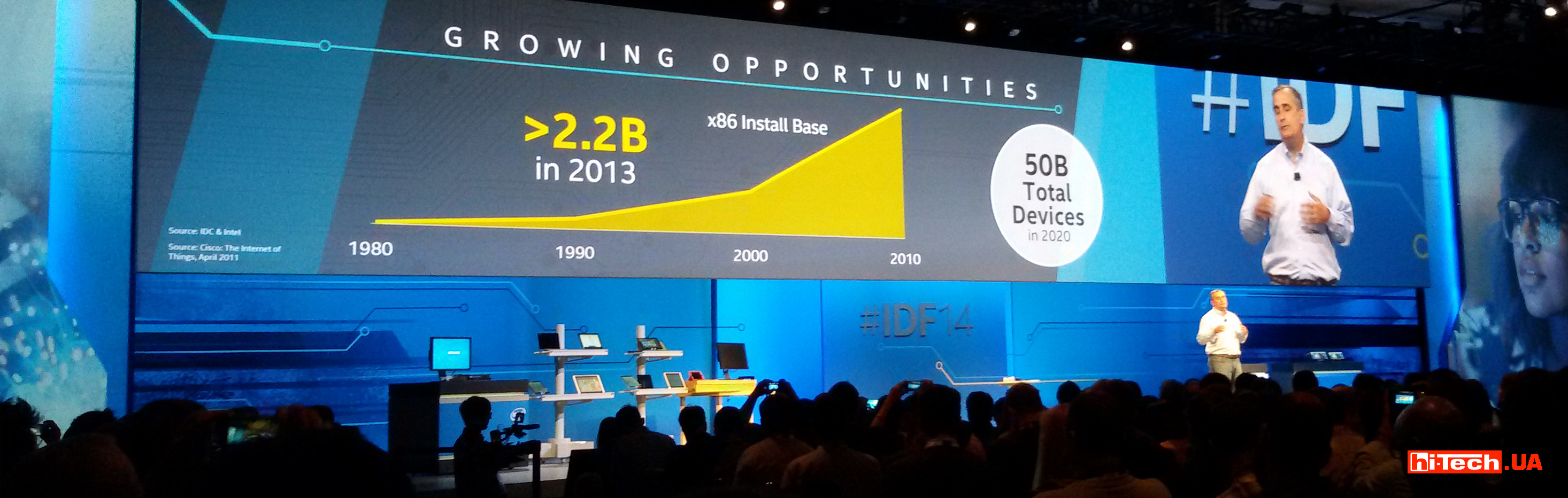 15.09.14В нашей предыдущей новости с IDF 2014 мы уже упоминали, что сегодня в мире насчитываются миллиарды цифровых устройств генерирующих 35 зеттабайт (35 с 21-м нулем байт). К 2020-му году ожидается достижение количества всех устройств до 50 млрд. А за 2013-й год устройств на архитектуре х86 стало больше на 2,2 миллиарда.