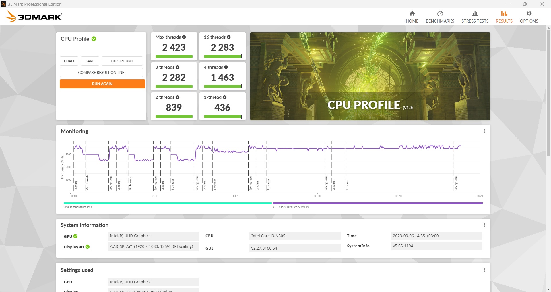 The image is handled by the built-in Intel UHD Graphics 600, operating at a maximum frequency of 1.25 GHz. With the first benchmarks it seems that the CPU is not very productive, but when comparing the test results we see that the processor is more than enough for its segment. It has performance at the level of hybrid architectures, where there are both powerful and weak cores.