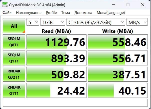 But the drive, although it is designed in the format of a combination of a built-in chip and a separate M.2 slot, is supported by the processor only in the PCIe 3.0 revision. Thus, we find the laptop has a built-in UFS 2.1 drive with a capacity of up to 256 GB, as well as an M.2 slot for an additional drive with a capacity of up to 1 TB. Versions with 256 GB and a version with 256+256 GB will be supplied to Ukraine. In our case, this is an atypical configuration, which received slightly more – 256 + 512 GB.