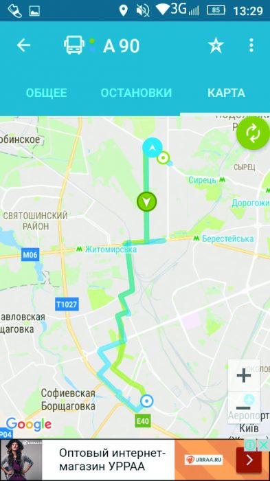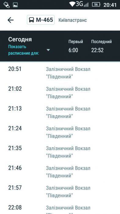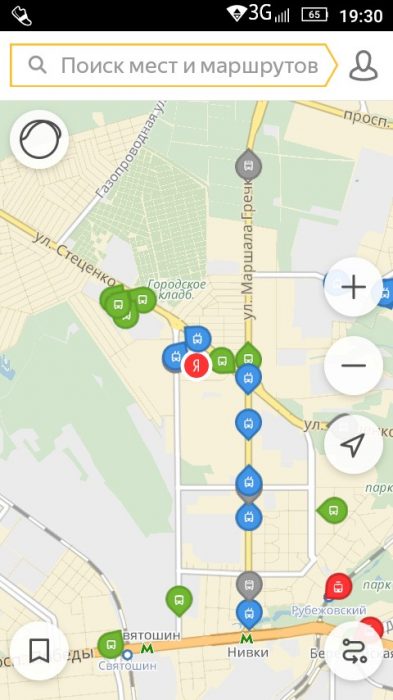 With Yandex. TransportIt is more convenient to work on the principle of the opposite – to track not specific routes, but those traveling in your area, in real time. The application also calculates when the next transport will arrive. The directions of the route are clearly visible on the map – forward and backward are marked in blue and green, idle transport at the final stops is marked in grey. But, as with Easyway, it is not without its shortcomings: the application does not display all of the transport, even of Kievpastrans, in real time. This is especially true for minibus taxis – they are not visible on the map, you can only view the outlines of their routes on the map.
