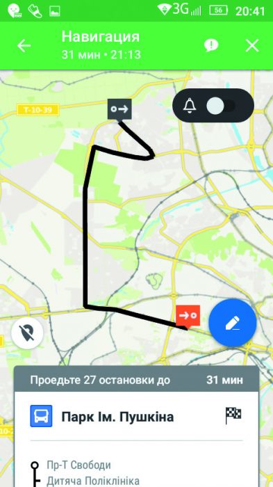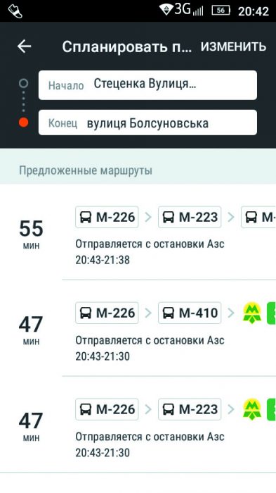 Among other necessary functions, it is worth noting the creation of routes with drawing on the city map (the metro is also taken into account). By the way, the service now operates in fewer cities in Ukraine than initially, due to conflicts with companies that established the rights to transmit GPS data. Route tracking is available in Kyiv, Dnepr, Kamensky, Poltava, Drohobych, Khmelnitsky, Kropyvnytskyi, Lvov.
