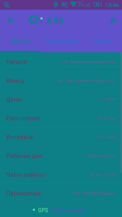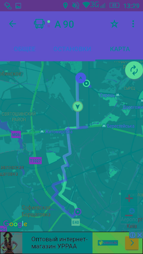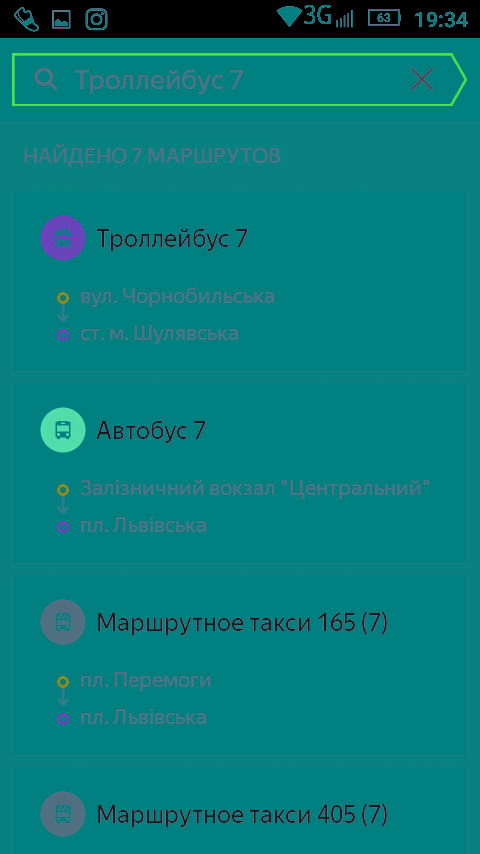 With Yandex. TransportIt is more convenient to work on the principle of the opposite – to track not specific routes, but those traveling in your area, in real time. The application also calculates when the next transport will arrive. The directions of the route are clearly visible on the map – forward and backward are marked in blue and green, idle transport at the final stops is marked in grey. But, as with Easyway, it is not without its shortcomings: the application does not display all of the transport, even of Kievpastrans, in real time. This is especially true for minibus taxis – they are not visible on the map, you can only view the outlines of their routes on the map.