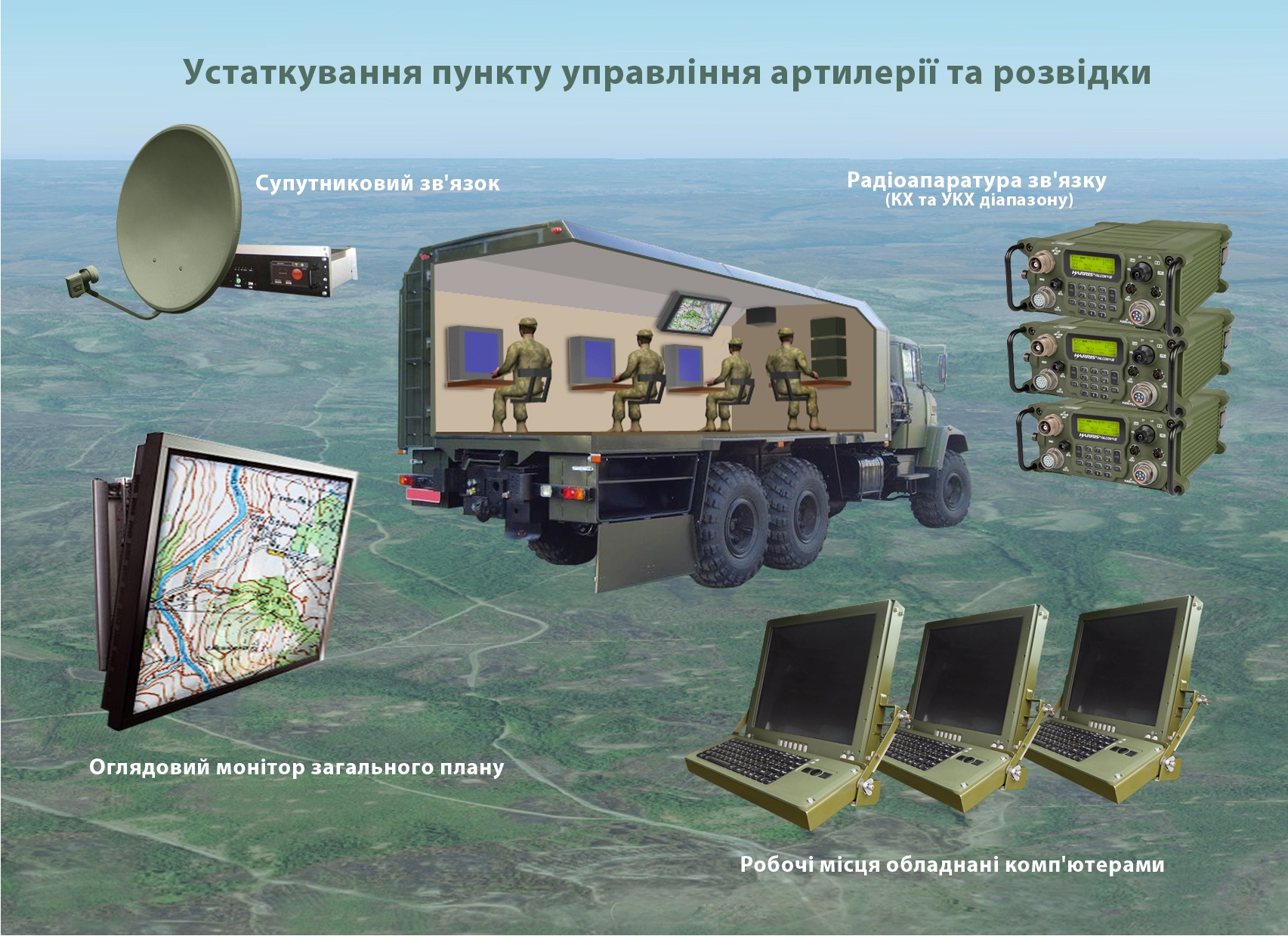 9. Modernization kit for the sound-metric reconnaissance station AZK-7. Provides equipment for the artillery sound-metric complex with modern software and hardware for digital transmission of data on reconnaissance targets to control points and means of destruction. Work to modernize one complex can be completed within two weeks.
