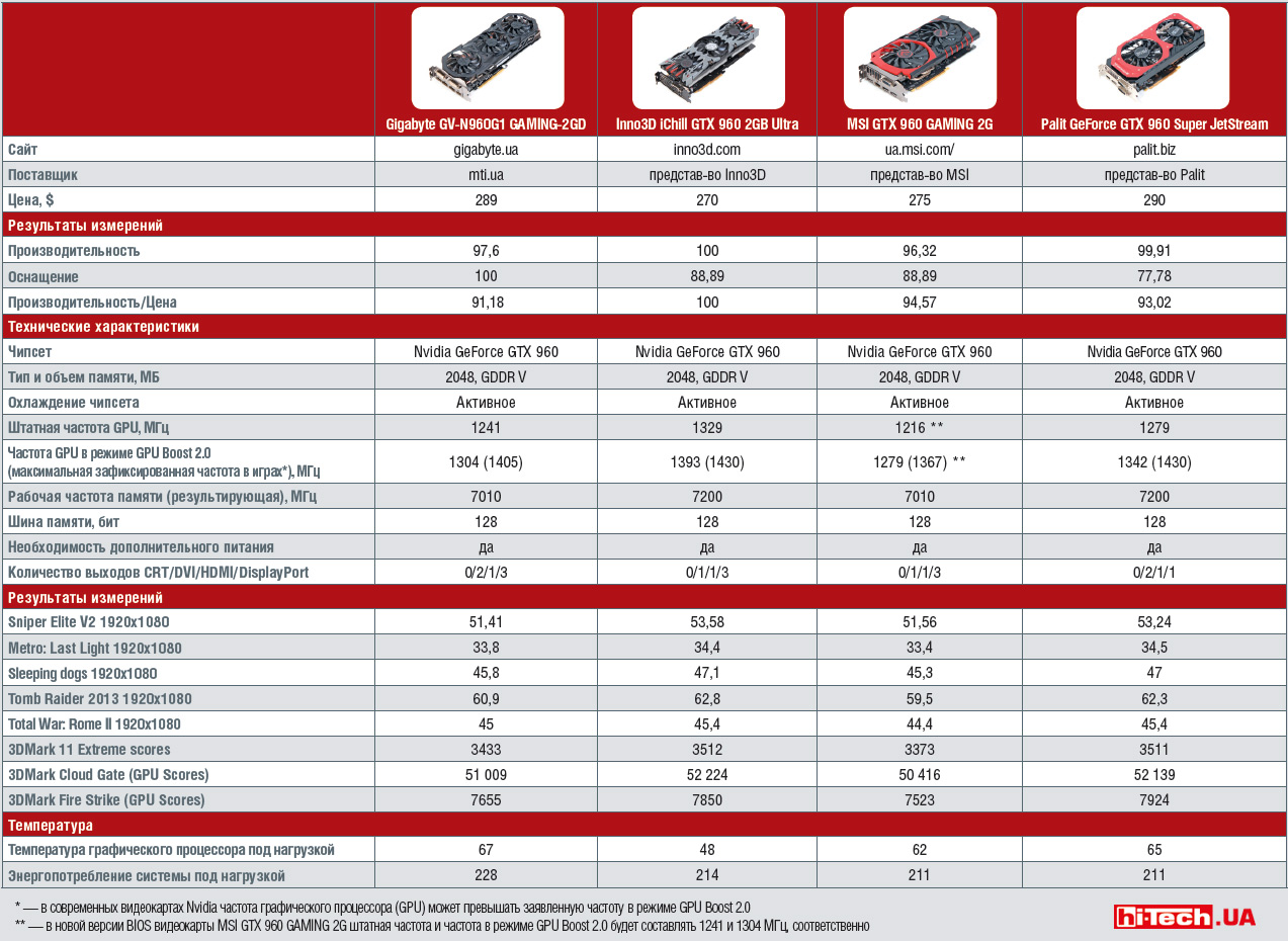 NVIDIA GeForce GTX 960 video cards сomparative test