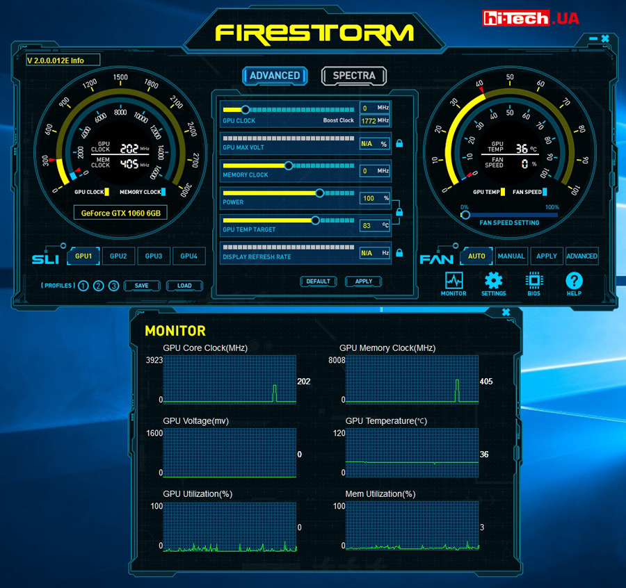 The video card has a proprietary ZOTAC FireStorm application for monitoring and overclocking, which is very, very similar to the popular MSI Afterburner