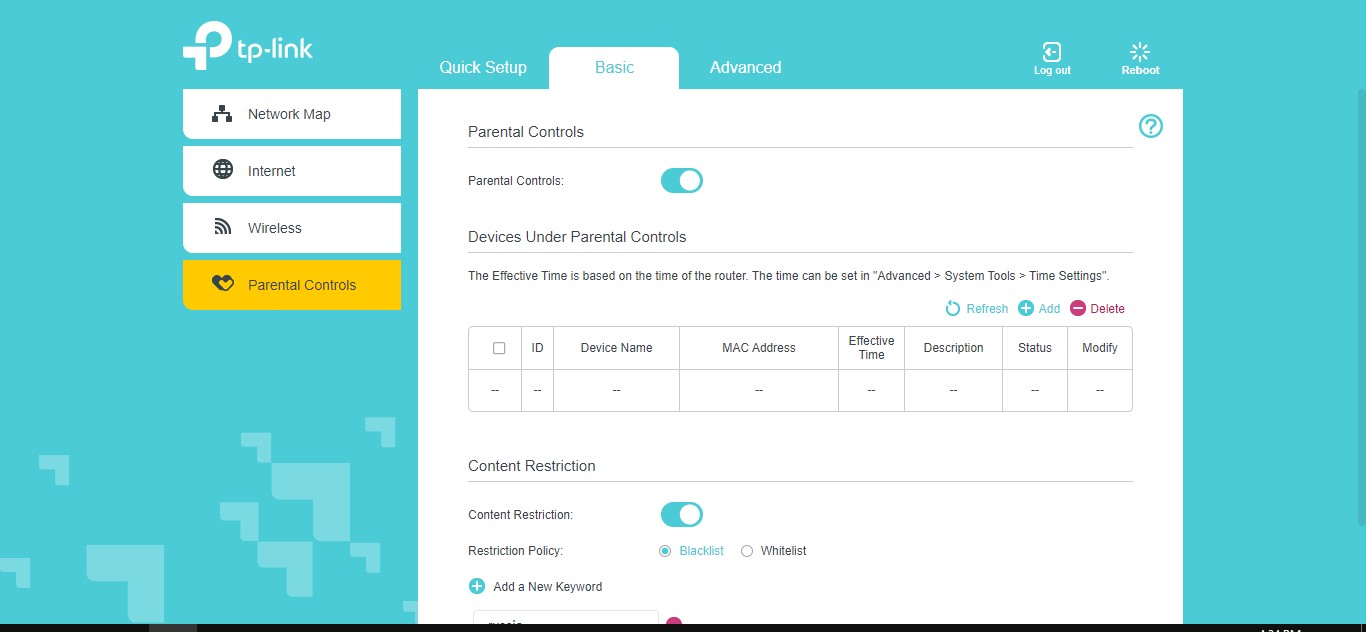 The end user can configure the router either through the interface in a desktop browser or through the TP-Link Tether mobile application. The user settings sections are no different from those for other TP-Link network devices that we’ve covered. You can create guest subnets, in particular two for the 5 GHz band, configure VPN and IP TV, activate parental controls by adding sites and keywords to the blocking or allowing lists. Separate sections are devoted to security, blocking DoS attacks, creating lists of trusted devices and monitoring the local network.