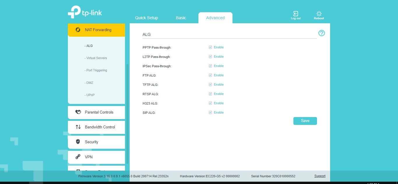 | Port forwarding: | virtual server, auto-port forwarding, DMZ, UPnP |