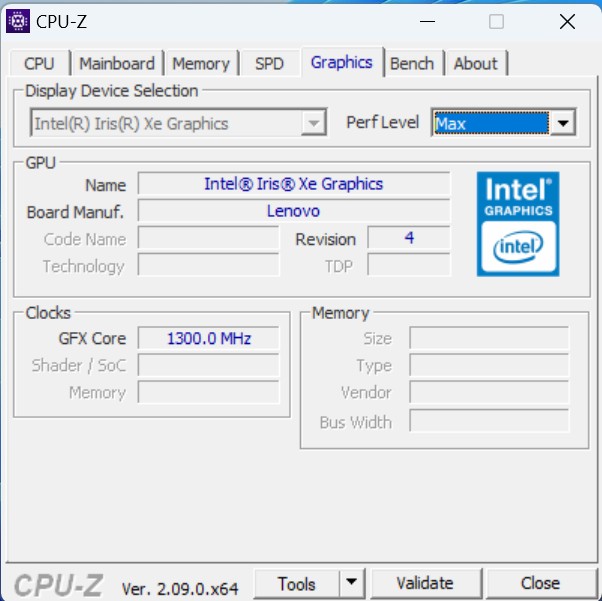 | Video adapter: | Intel Iris Xᵉ 1300 MHz |