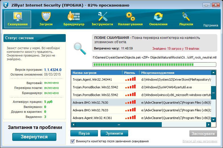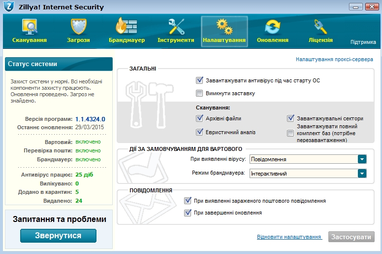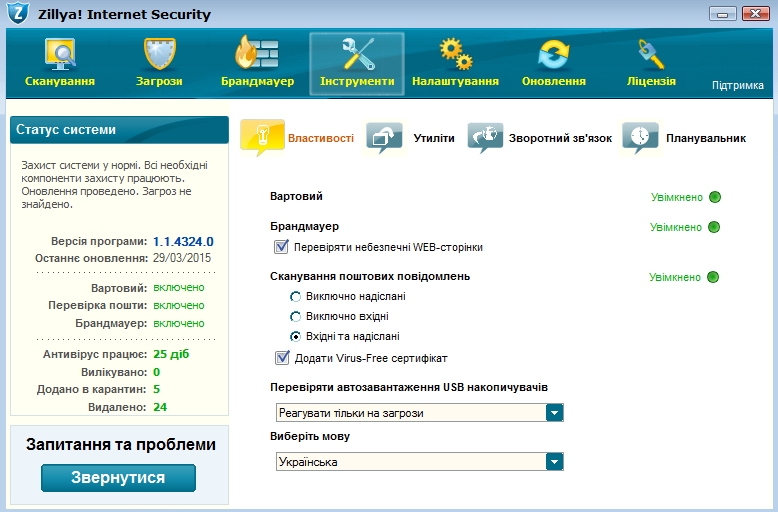 But compared to the price of Zillya! Internet Security (which costs 180 UAH for an annual license for one PC), its minor shortcomings do not seem very significant. The program responds well to threats, is not demanding on system resources, is not cluttered with unnecessary modules, and is easy to use. Those who do not chase famous brands can easily save on protecting their PC and support the domestic manufacturer.