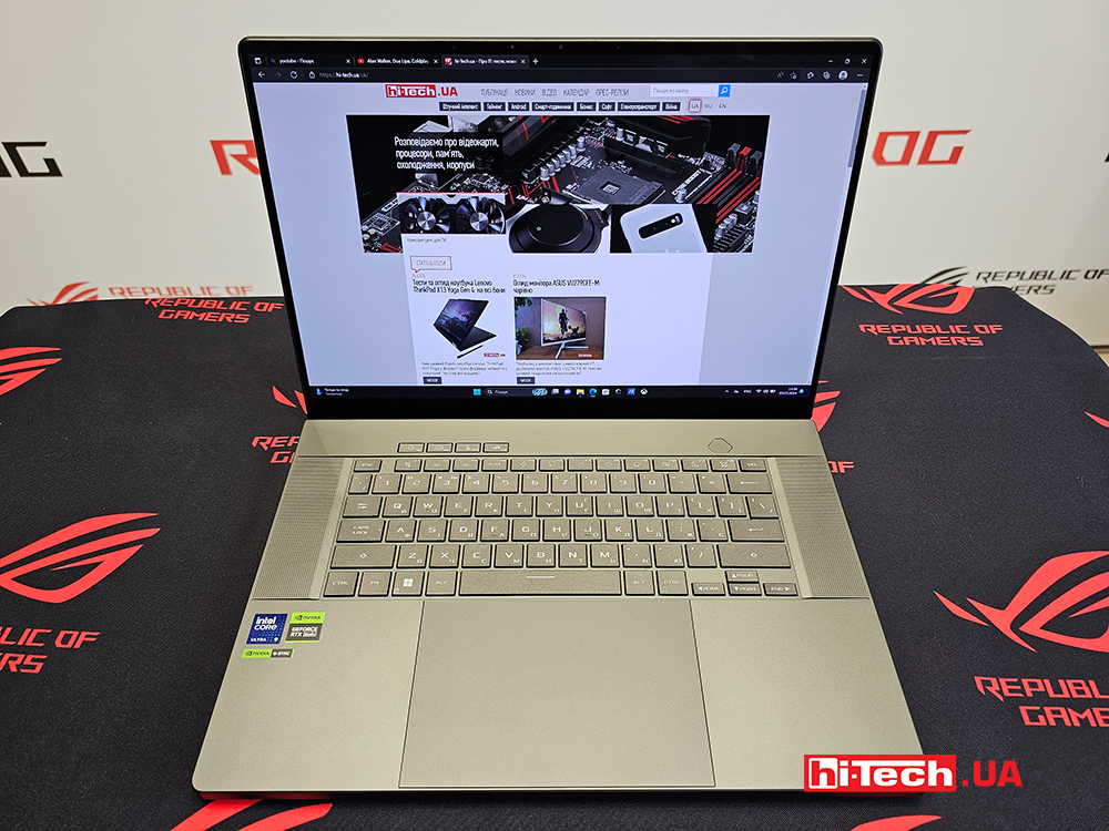 Zephyrus G16 of the new generation is equipped with OLED panels with a resolution of 2.5K and a refresh rate of 240 Hz. These are matrices with a ratio of 16:10 with a response time of 0.2 ms (so less than a second). With 100% coverage of the DCI-P3 color palette and Delta E less than 1. That is, the laptop is more than ready to work with graphics.