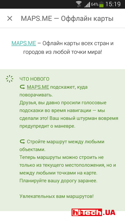 But in the latest update of the MAPS.ME application, the developers have added voice prompts. At the moment, a very limited set of supported languages is available for voice prompts (Russian and Ukrainian languages are not available).