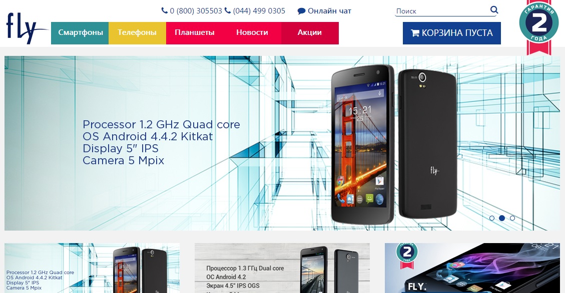 Весь модельный ряд продукции Fly – смартфоны, телефоны и планшеты – теперь можно приобрести на сайте http://shop.fly.ua/. Есть своя служба поддержки. На все смартфоны, телефоны и планшеты Fly распространяется 2 года полного гарантийного обслуживания.