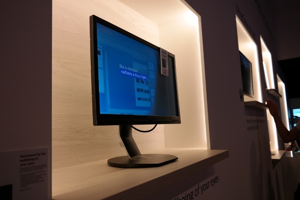 Для тех, кто в первую очередь заботится о своем здоровье, есть линейка Philips SoftBlue Light. В нем на аппаратном уровне (а не на программном, как в схожих устройствах) уменьшена яркость свечения голубых тонов. На практике это снижает нагрузку на глаза, но за то время, что мы провели возле стенда, проверить это не удалось. Но качество изображения, по крайней мере, из-за этого точно не страдает.