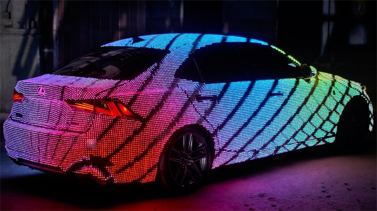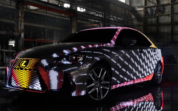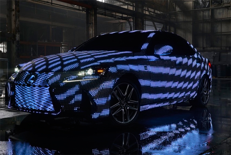 На этот раз под конец года был представлен седан Lexus 2017 IS, кузов которого выполняет функции новогодней ёлки или сплошного дисплея. На всю поверхность машины нанесены 42 тыс. светодиодов с индивидуальным управлением. Общая длина только LED-лент составляет без малого 800 метров.