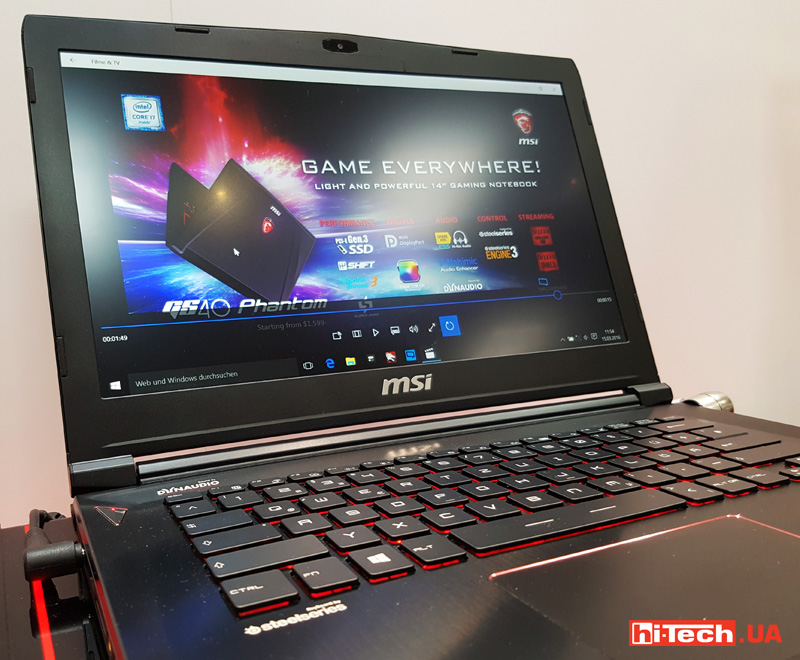 Интересно, что в таком сложном инженерном продукте как игровые ноутбуки, компании MSI удалось построить удивительно компактный GS40 Phantom Pro. В версии GS40-6QE, установлен процессор последнего поколения Intel Core i7-6700HQ с NVIDIA GeForce GTX 970M 3 ГБ GDDR5. Оперативной памяти 16 ГБ DDR 4-го поколения (максимально возможный объем 32 ГБ).