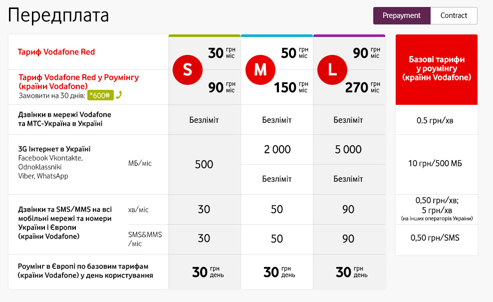 В сеть также попали предварительные тарифы Vodafone на подключение по предоплате. Всего будет три тарифа: S, M и L. С одной стороны, тарифы для использования в Украине приятно удивили, с другой стороны, есть варианты для использования в роуминге и они значительно дороже. Хотя, стоит отметить, что звонить за границей с ними все таки выгоднее, чем по нынешним.