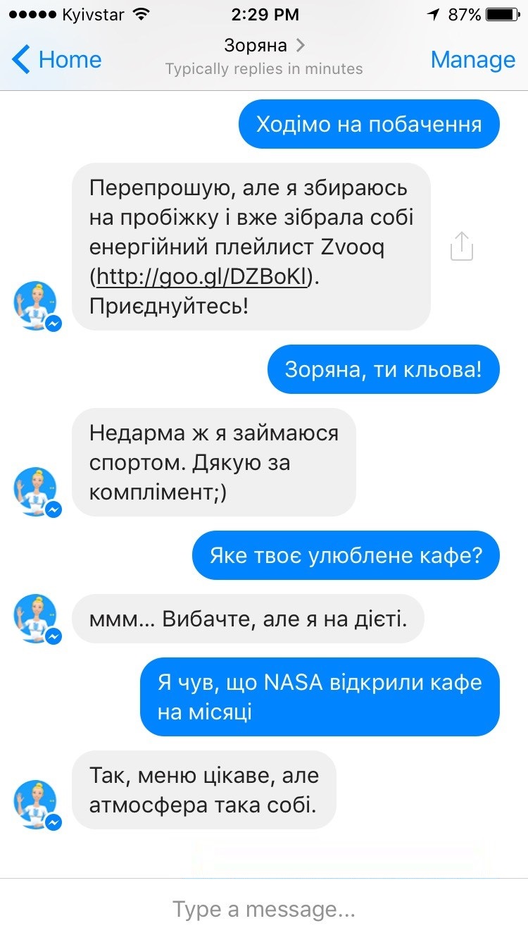 One thought on “Первого чат-бота Киевстар в Facebook Messenger зовут Зоряна”