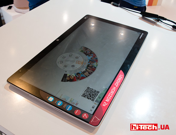 Моноблок Lenovo Horizon 2s имеет толщину всего 16 мм, а вес – 2,6 кг. Такой «стол-компьютер» без труда можно переносить из комнаты в комнату или даже брать с собой (ПК может работать автономно до 3 часов).