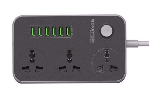 В PowerStrip-3 встроено сразу три универсальные сетевые розетки, к которым можно подключить вилку любой из трех, самых распространенных в мире, конфигураций. Кроме того, имеется шесть стандартных USB-разъемов для подключения интерфейсных кабелей для зарядки мобильных гаджетов.