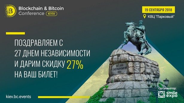 К 27-й годовщине независимости Украины Blockchain & Bitcoin Conference Kyiv дарит скидку на билеты – 27%