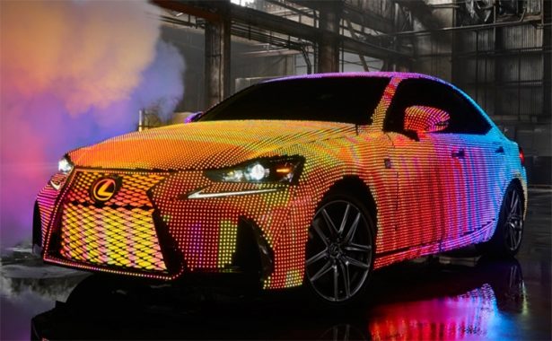 Под конец 2017 года был представлен седан Lexus 2017 IS, кузов которого выполняет функции новогодней ёлки или сплошного дисплея
