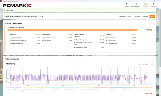 Intel Core Ultra 9 185H має частоту до 5,1 ГГц, а також вбудований графічний процесор Arc з 8 ядрами Xe, що працюють із частотою до 2,35 ГГц. Нова архітектура Xe LPG дозволяє підвищити продуктивність при нижчій мінімальній напрузі, а також додає підтримку технології масштабування Intel XeSS та трасування променів. Система працює чудово, а ось при перемиканні відеокарти (під час запуску ігор, наприклад) система на мить підвисає, оскільки відбувається перемикання MUX.